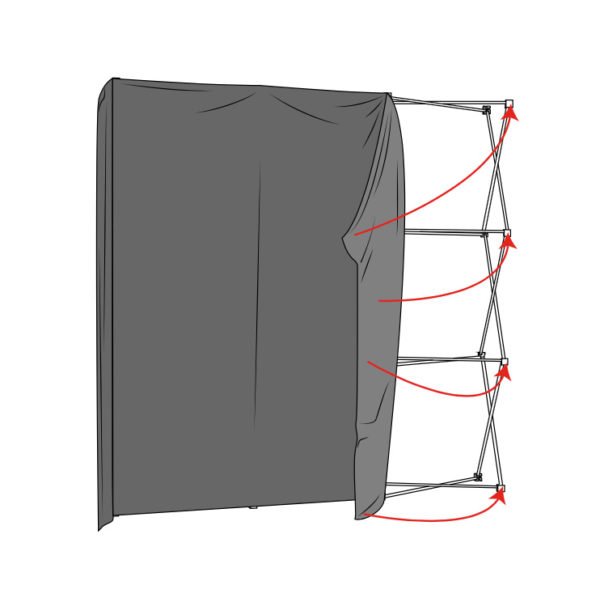 Photocall con una estructura resta, tipo paraguas. Instalación muy rápida.